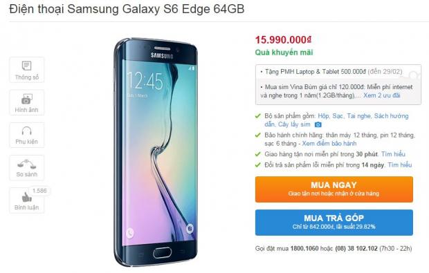 Cụ thể, phiên bản 32 GB của S6 Edge được giảm từ 17,49 triệu xuống còn 14,99 triệu đồng, bản 64 GB giảm từ 18,49 triệu xuống còn 15,99 triệu đồng, cả hai đều giảm 2,5 triệu đồng, quả là mức giảm rất mạnh phải không nào?