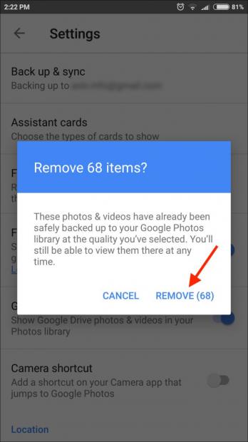 Khi hoàn tất tìm kiếm, Google Photos sẽ hiển thị số lượng file và tùy chọn để bạn xóa chúng. Để xóa các file được tìm thấy khỏi bộ nhớ máy, bạn chỉ cần nhấn nút Remove. Khi quá trình xóa file hoàn tất, bạn sẽ thấy một thanh banner thông báo ở dưới cùng màn hình cho biết lượng không gian bạn đã giải phóng được.