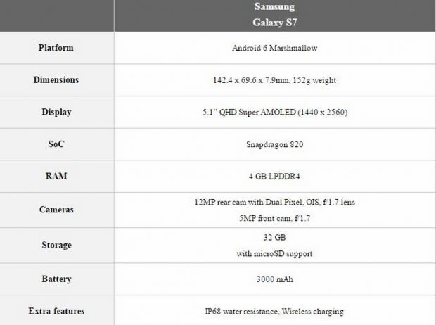 Cấu hình chính thức Samsung Galaxy S7