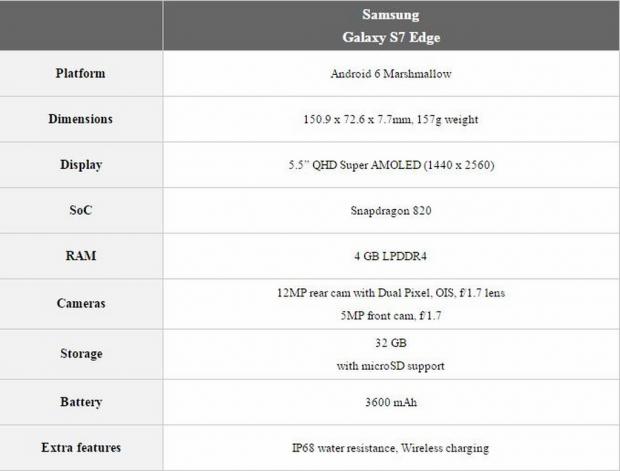 Cấu hình chính thức Samsung Galaxy S7 edge