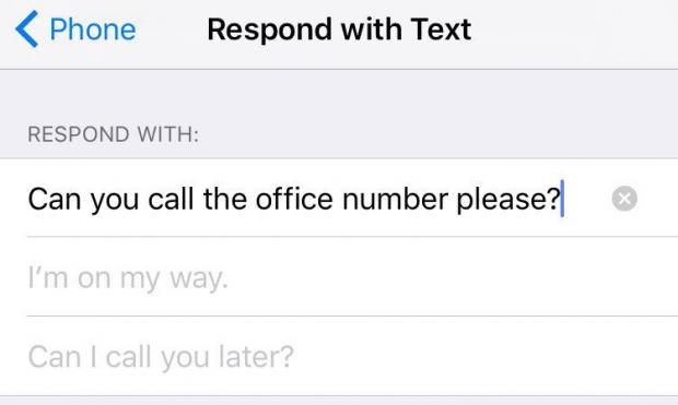 Điều hướng đến Settings > Phone > Respond with Text. Tại đây bạn có thể thay đổi những tin nhắn mặc định có thể gửi để từ chối cuộc gọi.