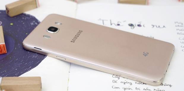Galaxy J7 2016 có thiết kế đẹp mắt với bộ khung kim loại chắc chắn, cao cấp. Mặt lưng mặc dù bằng nhựa nhưng được sơn phủ ánh kim cho cảm giác sang trọng hơn, ngoài ra các đường bo cong cũng giúp người dùng cầm trên tay cảm giác thoải mái hơn.