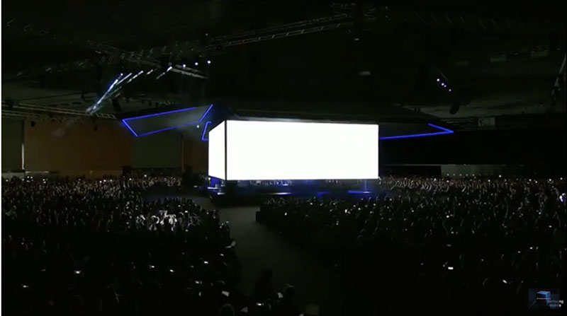 Đây là hình ảnh về 'Galaxy'. Có vẻ như cả hội trường đang chuẩn bị đeo kinh vào để xem một video giới thiệu gì đó chăng?