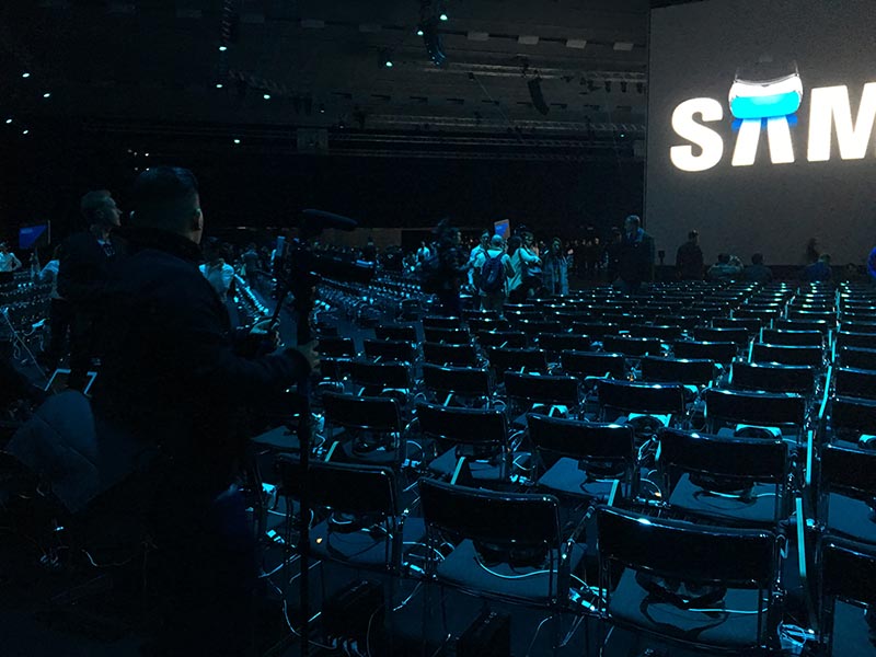 Đây là căn phòng mà Samsung sẽ giới thiệu S7, đúng như thông tin trước đó thì khách mời sẽ được theo dõi sự kiện bằng kính thực tế ảo VR. Căn phòng này với hơn 1000 chỗ ngồi và tất cả đều được trang bị phụ kiện thực tế ảo của nhà Sammy. Có vẻ như Samsung rất chịu chơi đây.