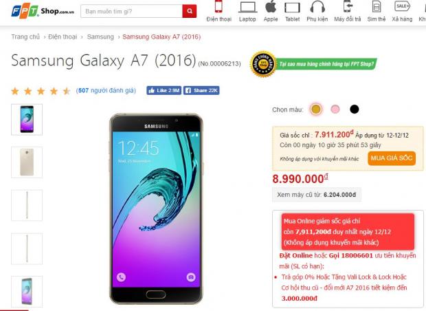 đang giảm giá Samsung Galaxy A7 (2016) hơn 1 triệu đồng, duy nhất chỉ trong ngày 12/12. Đây là cơ hội không thể tốt hơn để bạn sở hữu chiếc điện thoại tầm trung hấp dẫn nhất hiện nay.