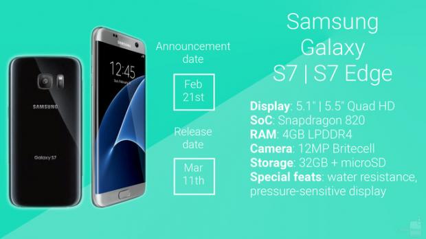 Thời gian ra mắt Galaxy S7 là vào 11 tháng 3 tới