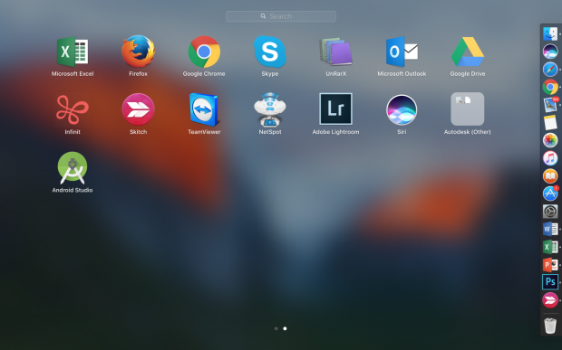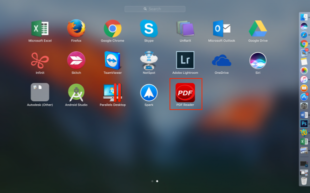 Đầu tiên, bạn cần truy cập vào giao diện Lauchpad để có thể gỡ ứng dụng Macbook, việc truy cập này khá đơn giản, bạn chỉ cần nhấn phím F4 trên bàn phím. Giao diện Lauchpad sẽ hiển thị như sau: