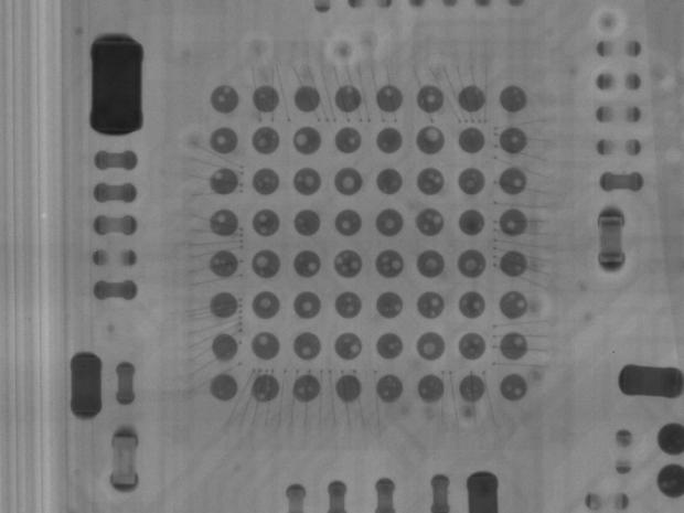 Chụp X-quang bảng mạch và lộ diện ra đây chính là sản phẩm có chất lượng kém nhất của Apple từ trước đến này. Các bọt không khí xuất hiện dày đặc trong các mối hàn, điều này thật khó hiểu vì chúng sẽ giảm đáng kể chất lượng âm thanh truyền tải đến tai nghe