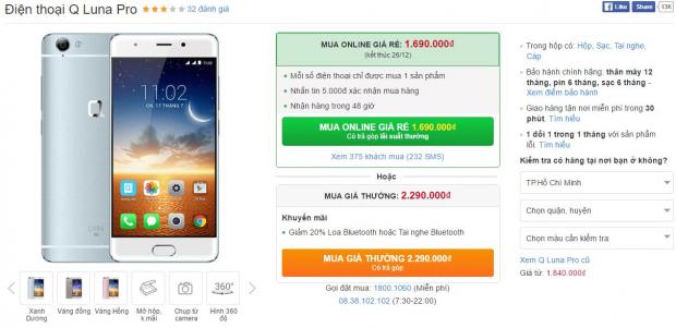 Theo đó, mẫu smartphone thương hiệu Việt Q Luna Pro mới đây tiếp tục được hạ giá mạnh, từ 2.29 triệu xuống còn 1.69 triệu đồng, giảm 600 ngàn đồng, mức giá hấp dẫn đối với sản phẩm cực đẹp này. Lưu ý với các bạn là chương trình chỉ áp dụng đến ngày 26/12 thôi nhé.
