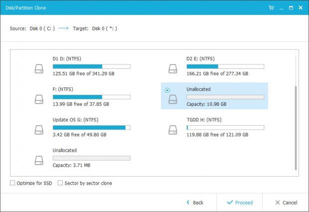 Bước 4: Tiếp đến bạn chọn nơi sao chép HĐH qua và nhấn vào 'Proceed' để tiến hành quá trình sao chép.