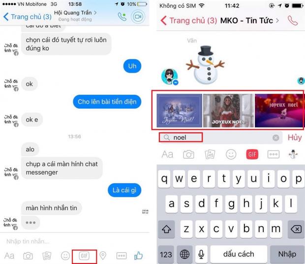 Facebook rất thông minh và hiểu tâm lý khác hàng khi trang bị tính năng ảnh động chủ đề giáng sinh ngày thành công cụ cửa sổ nhắn tin. Bạn có thể kích vào 'Gif' sau đó nhập vào 'noel' và lựa chọn ảnh mà bạn thấy thích nhất để chia sẻ với bạn bè.