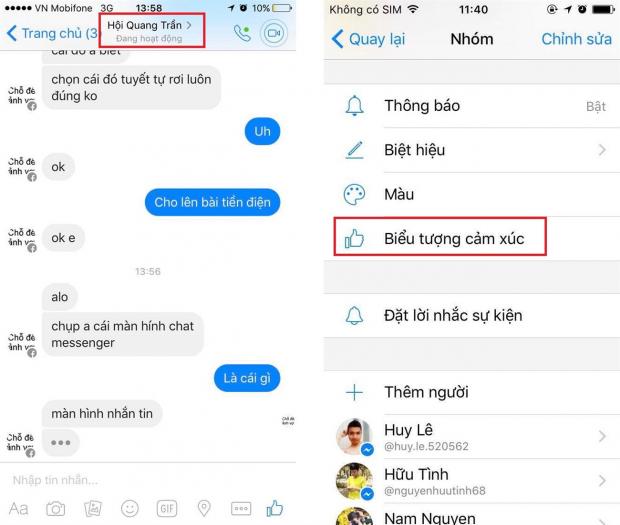 Bước 1: Tại màn hình trò chuyện, bạn nhấn vào Cài đặt (tên người đang chat) > Biểu tượng cảm xúc > Chọn vào hình 'Người tuyết'.