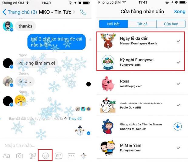 2. Chuyển sang dùng bộ sticker dành riêng cho giáng sinh