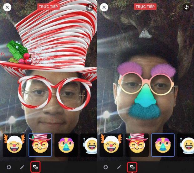 Trong mùa giáng sinh này Messenger cung cấp cho chúng ta tính năng chụp ảnh tự sướng đính kèm với các bộ hoạt ảnh cực thích mắt. Cách kích hoạt rất đơn giản, ngay trong giao diện camera bạn nhấn vào biểu tượng 'mặt nạ' sao đó chọn hoạt ảnh và chụp vào xong!