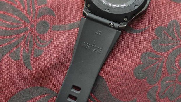 Dây đeo được làm bằng cao su dẻo chuẩn 22 mm, cho độ đàn hồi tốt. Giữa hai đầu móc khóa có nam châm cho lực hút nhỏ, khá thích mỗi khi đeo vào.