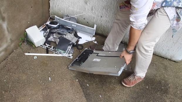 Video được thực hiện với nòng đốt có sức mạnh tương tự như một khẩu đại bác thực sự của trường đại học Purdue. Sức ép kinh khủng đã biến chiếc iMac G5 đẹp đẽ thành một đống vụn.
