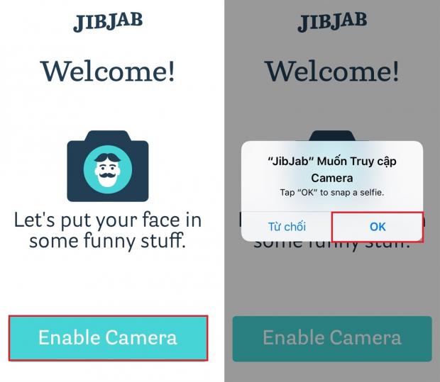 Tiếp theo ứng dụng sẽ xin cấp quyền Camera, nhấn chọn Enable Camera. Nhấn chọn tiếp OK để sử dụng Camera.