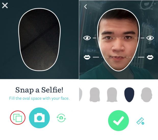 Tại giao diện chính của ứng dụng, người dùng sẽ được cung cấp một khung để điều chỉnh khuôn mặt cho hợp lý rồi nhấn chụp. Hoặc bạn cũng có thể sử dụng hình ảnh có sẵn bằng cách nhấn vào tùy chọn album.