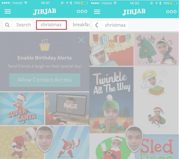 Với ứng dụng Jibjab, người dùng sẽ được cung cấp khá nhiều chủ đề chỉnh ảnh liên quan đến đêm giáng sinh. Bạn có thể tạo các ảnh gif có hình của mình để chúc mừng giáng sinh trên Facebook hay Zalo thật ấn tượng. Hiện tại ứng dụng đều được hỗ trợ trên iOS và Android.