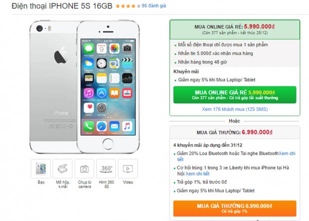 Theo đó, iPhone 5s hiện vẫn đang dừng chân ở vị trí thứ 9, vượt qua các sản phẩm đang làm mưa làm gió gần đây như Xperia XA hay Galaxy J2. Hiện iPhone 5s đang được bán với giá 6,99 triệu, giảm ngay còn 5,99 triệu khi mua online.