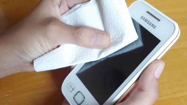 Sử dụng khăn để thấm nước thiết bị. Tránh sử dụng các thiết bị như máy sấy tóc để hong khô nước.