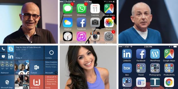 Vị CEO của Microsoft là một người yêu thích bộ môn cricket, nên không khó hiểu khi màn hình home của ông xuất hiện ứng dụng Cricinfo của ESPN. Ngoài ra ông chắc chắn sẽ là một người dùng trung thành các dịch vụ của Microsoft như One Note, Skype và Outlook.