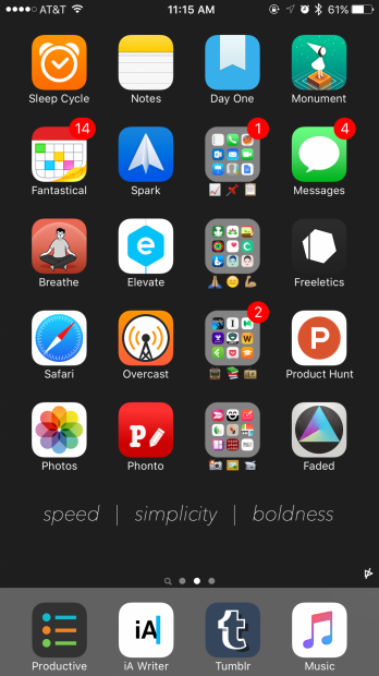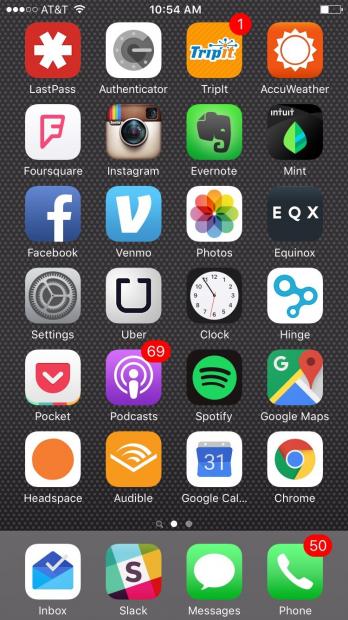 Màn hình chủ của Hayes có vẻ thú vị khi sử dụng các biểu tượng cảm xúc để đặt tên cho các folder trên màn hình home. Ông cũng sở hữu nhiều ứng dụng “độc” như Faded để chỉnh sửa hình ảnh, Day One để viết báo và Freeletics để luyện tập thể dục.