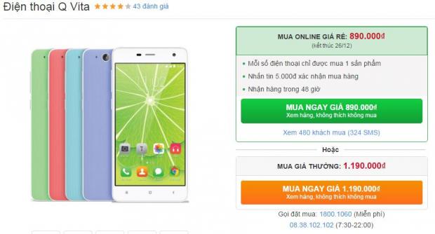 Cụ thể, Q Vita hiện đang trong chương trình mua online giảm giá vì vậy mà giá bán của máy được giảm từ 1.19 triệu xuống còn 890 ngàn đồng. Lưu ý với các bạn là chương trình chỉ còn duy nhất trong ngày hôm nay vì vậy bạn phải nhanh tay lên nhé.