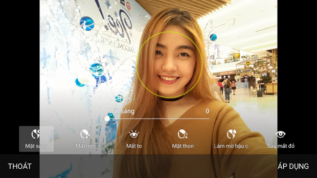 Trong mục chỉnh sửa chung, máy cho phép người dùng có thể cắt xoay lật, điều chỉnh các thông số hình ảnh như độ sáng, độ tương phản, độ bão hoà, nhiệt độ màu... Bên cạnh đó, bạn cũng có thể thêm một số hiệu ứng đẹp mắt hay trang trí thêm cho hình ảnh trước khi chia sẻ. Còn mục làm đẹp bao gồm các tuỳ chỉnh: mặt sáng, mặt mịn, mắt to, mặt thon, làm mờ hậu cảnh, chân dài và sửa mắt đỏ.