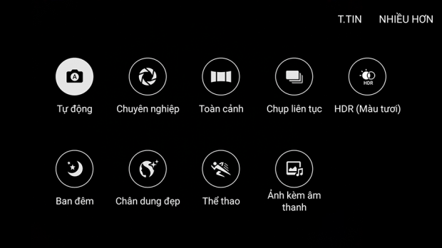 Ứng dụng chụp ảnh của Galaxy J5 Prime tương tự với đàn anh J7 Prime, giao diện được thiết kế gọn gàng và khoa học, vị trí nút quay/chụp ảnh, thư viện ảnh, xoay camera hay mục chọn chế độ chụp được làm rõ ràng, dễ hiểu và đặt phía dưới màn hình thuận tiện cho việc thao tác.