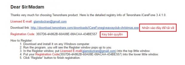 Bước 2: Tiến hành mở email vừa đăng ký ở bước trên đến lấy đường dẫn tải và key bản quyền.
