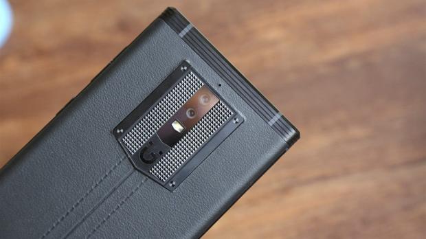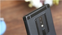 Phía sau máy là cụm camera rất lớn được hoàn thiện chủ yếu từ kim loại và mặt lưng da bê với phong cách sang trọng.