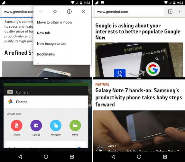 Từ lâu Samsung đã tùy biến lại Google để mang tính năng năng chia màn hình để sử dụng cùng lúc 2 ứng dụng. Tuy nhiên tận bây giờ Google mới mang tính năng này trên Android 7.0 Nougat. Để kích hoạt chế độ này nhấn giữ lâu vào “recent apps” (ứng dụng gần đây).