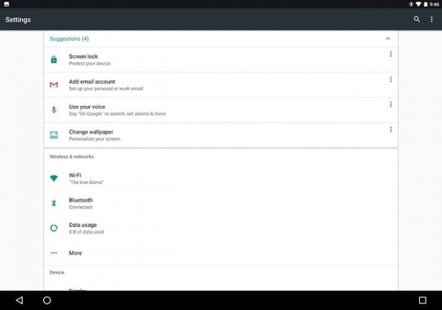 Khi bạn mở mục Cài đặt, Android 7.0 sẽ dựa trên các thao tác của người dùng trước đó để cung cấp gợi ý về 1 số thiết lập ngay phía trên màn hình.