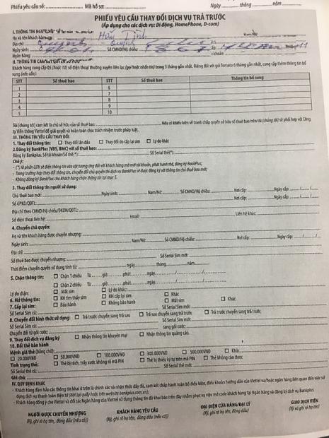 Đầu tiên mình vào trình bày với nhân viên là đi đổi SIM 4G, sau đó được nhân viên đại lý đưa cho một tờ kê khai thông tin, tờ khai này giống y chang như những tờ khai khi muốn làm lại SIM vậy. Trong tờ khai bạn sẽ điền đầy đủ thông tin, số CMND, các số điện thoại bạn đã gọi gần đây (không biết cái này cần thiết không nhưng mình vẫn điền cho đủ).