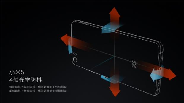 Xiaomi cũng giới thiệu công nghệ chống rung mới cho chiếc Mi5 ra mắt tại MWC năm nay với khả năng chống rung tới 4 trục. Tương tự như khả năng chống rung của OPPO, việc chống rung trên Mi 5 sẽ bổ thêm 2 trục xoay. Chưa rõ khả năng chống rung của Xiaomi Mi 5 là chống rung từ cảm biến hay ống kính nhưng qua video giả lập tác động rung mà Xiaomi công bố, có thể thấy hiệu quả mang lại khá ấn tượng. Hình ảnh thu được từ Mi5 mượt mà, êm ái hơn trên iPhone 6s và 6s Plus. Xem thêm: Xiaomi 'khoe' khả năng chống rung 4 trục của Mi 5.