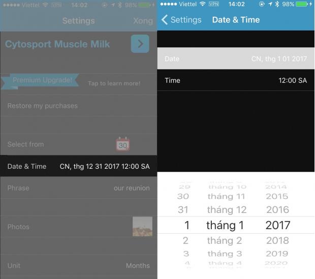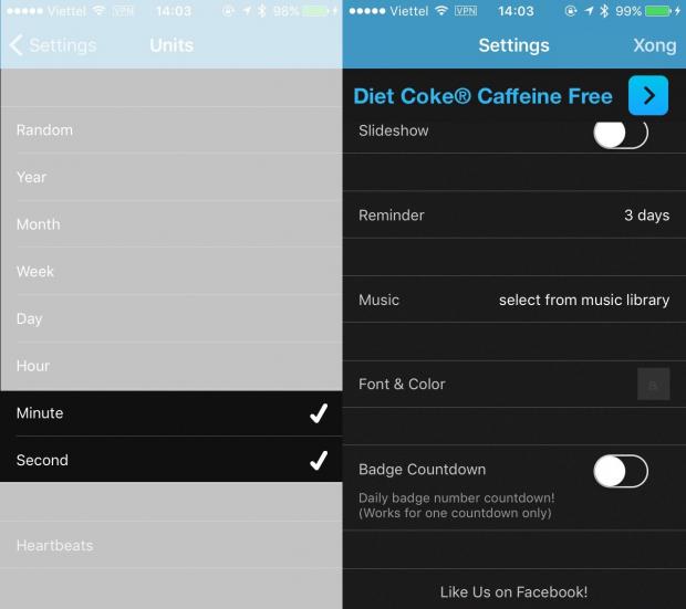 Units là đơn vị tính. Người dùng có thể đặt các đơn vị tính tùy theo nhu cầu và sở thích của mình. Countdown có khá nhiều lựa chọn cho người dùng từ năm, tháng, tuần cho đến phút, giây.