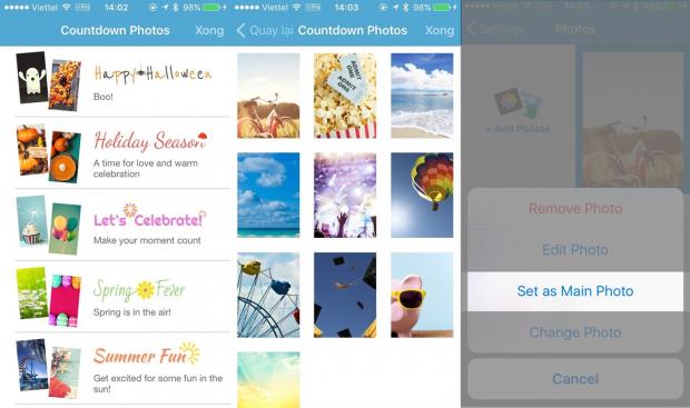 Photos là nơi bạn có thể thỏa sức lựa chọn các hình ảnh nền sao cho phù hợp nhất với sự kiện của bạn. Bạn có thể sử dụng hình ảnh mặc định của ứng dụng hoặc thêm các hình ảnh khác từ bên ngoài.