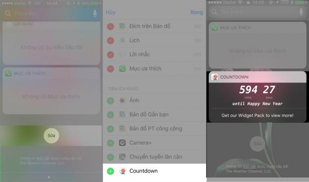 Đầu tiên, bạn hãy mở Trung tâm thông báo (Notification Center) > kéo xuống dưới và chọn mục sửa (edit). Tìm widget Countdown ở mục Tiện ích khác và nhấn vào biểu tượng dấu '+' để thêm vào trung tâm thông báo. Sau đó nhấn Xong (Done) để lưu.