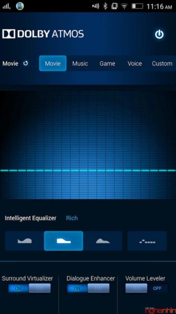 Ứng dụng Dolby Atmos với các tùy chọn điều chỉnh âm thanh tùy vào điều kiện sử dụng và equalizer.