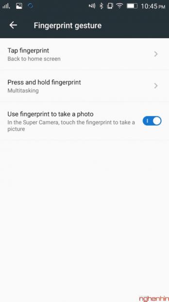 Thay vì để người dùng tự đặt ngón tay theo các vị trí khác nhau, Lenovo đã hướng dẫn ghi nhận vân tay theo từng phần của ngón cho tới khi ghi nhận được đầy đủ vân tay. Nhờ có bước ghi nhận kỹ lưỡng này, tôi có thể dễ dàng dùng ngón trỏ đặt ở nhiều góc độ khác nhau để mở khóa máy. Bên cạnh khả năng bảo mật, Lenovo còn tích hợp thêm một số tính năng để tận dụng cảm biến vân tay như chạm để thoát về màn hình chính, nhấn giữ để mở menu đa nhiệm.