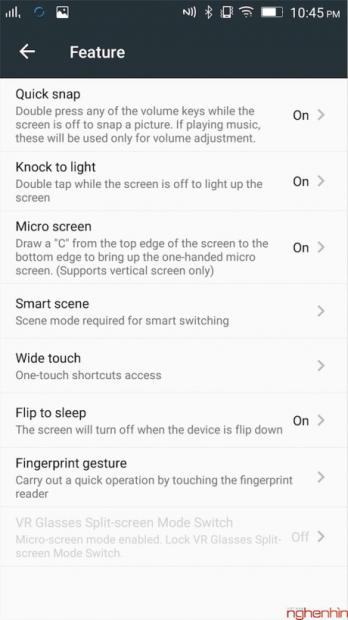 Dù chỉ chạy trên nền tảng Android 5.1 thay vì 6.0 mới nhất nhưng trên A7010, Lenovo đã tùy biến lại hệ điều hành của máy để thêm nhiều tính năng tiện dụng. Đầu tiên phải kể tới đó là khả năng chống cảm ứng màn hình khi để trong túi quần, sử dụng cảm biến tiệm cận để giữ cho màn hình không thể cảm ứng được, ngăn việc truy cập không mong muốn hoặc “ấn nhầm”.