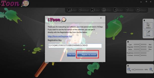 Bước 3: Cài đặt iToon theo file Setup.exe, sau đó khởi động phần mềm lên và nhập vào đoạn mã trong file 'Readme.txt' ở Bước 2 vào khung và nhấn 'Register my version' để kích hoạt bản quyền.