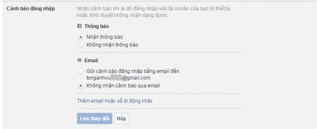 Cảnh báo đăng nhập: Cảnh báo đăng nhập có thể tăng tính bảo mật của tài khoản bằng cách cảnh báo cho bạn về thời gian và địa điểm ai đó cố đăng nhập tài khoản của bạn từ một thiết bị hoặc trình duyệt lạ. Bạn có thể chọn nhận thông báo từ trình duyệt web hoặc email của mình.