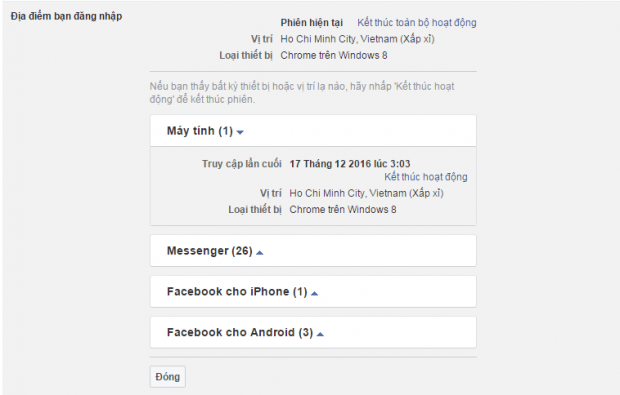 Facebook cung cấp người dùng khả năng đăng xuất từ xa, cũng nhờ tính năng này mà khả năng bảo mật được tăng lên. Nếu lỡ đăng nhập trên một thiết bị lạ, bạn hãy nhanh chóng xóa địa điểm đã đăng nhập để tránh các rắc rối sau này.