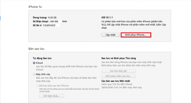 Nhấn phím Shift trên Windows hoặc Alt trên máy Mac, đồng thời click vào mục Restore iPhone.