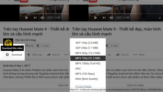 Vậy là những bước thiết lập đã xong, bạn chỉ cần truy cập vào Youtube, tìm đến video mình muốn. Khi đó, có một nút Download xuất hiện bên dưới để cho bạn có thể dễ dàng tải về. Người dùng có thể chọn định dạng cũng như kích thước video bạn muốn.