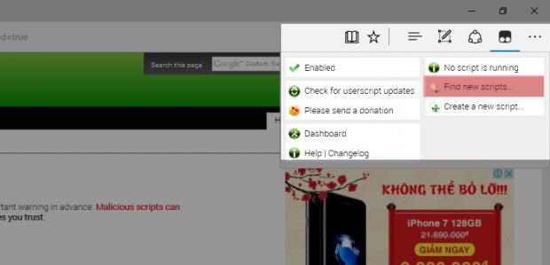 Sau khi thực hiện xong những bước trên, bạn cần thêm Script mới để tải video YouTube trên trình duyệt Edge