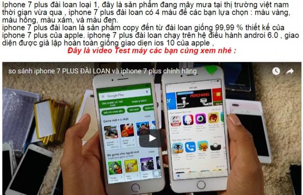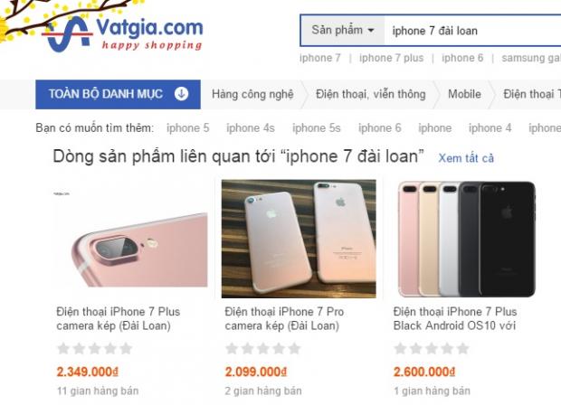 Theo khảo sát của ICTnews, trong những ngày giáp Tết Nguyên đán 2017, những chiếc điện thoại được quảng cáo là “iPhone 7”, “iPhone 7 Plus” hàng Đài Loan, Hồng Kông hay Singapore được rao bán với giá từ 2,1 – 2,8 triệu đồng đang tung hoành thị trường.