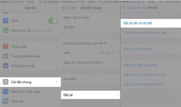 Lưu ý: Quá trình này chỉ thay đổi cài đặt về trạng thái ban đầu, vì thế sẽ không ảnh hưởng đến dữ liệu trên iPhone của bạn.